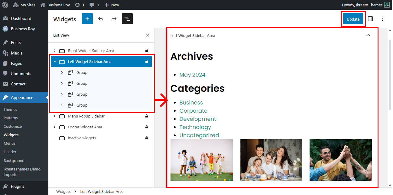 • Click on Left Widget Sidebar Area.