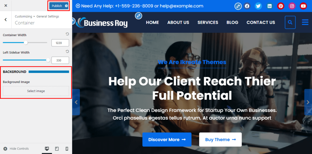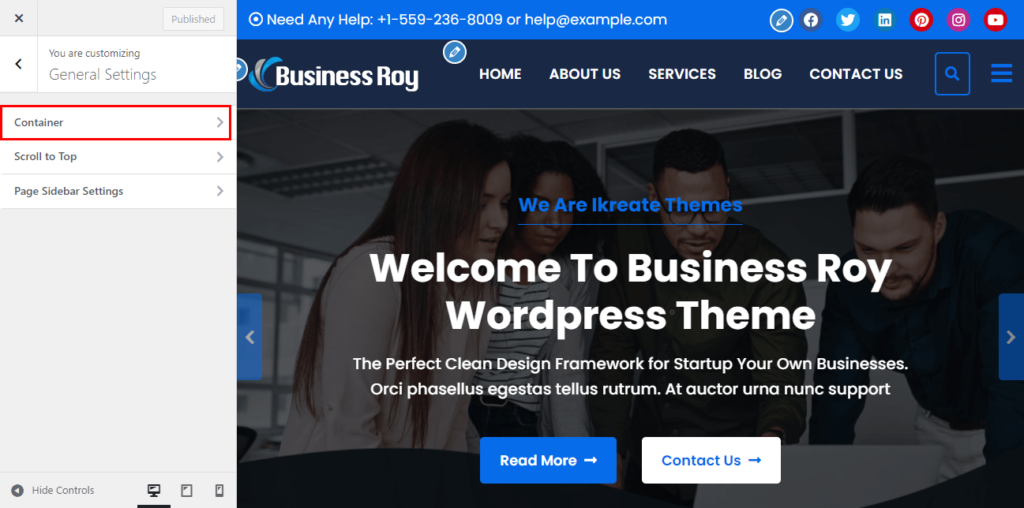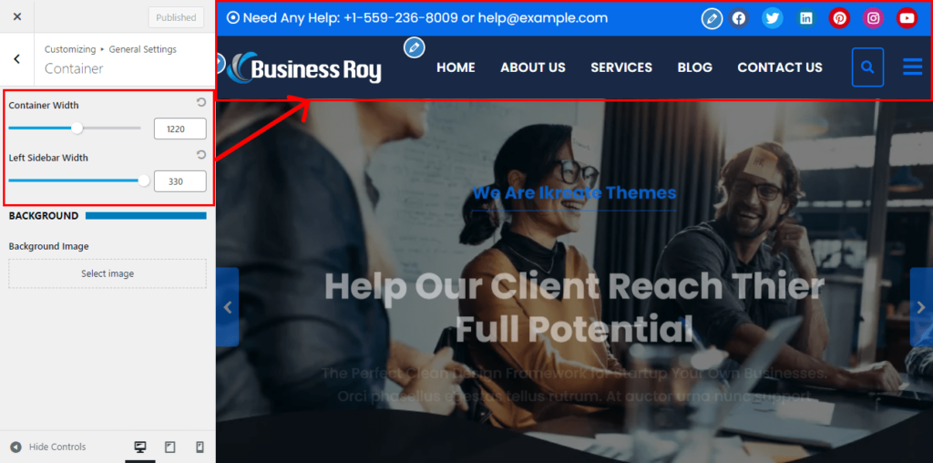 - You can also choose the website container width and sidebar width of the website.