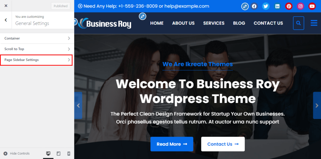 - Now, set the Page Sidebar option choose if you wish to have a set on your website else set the option.