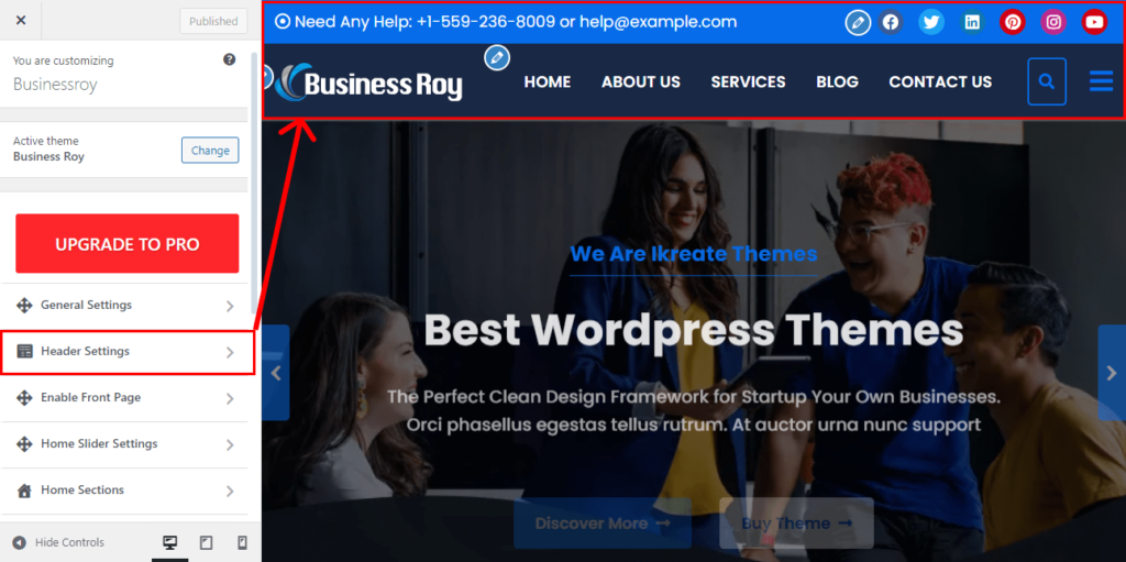 - Go to Appearance > Customize > Header Settings