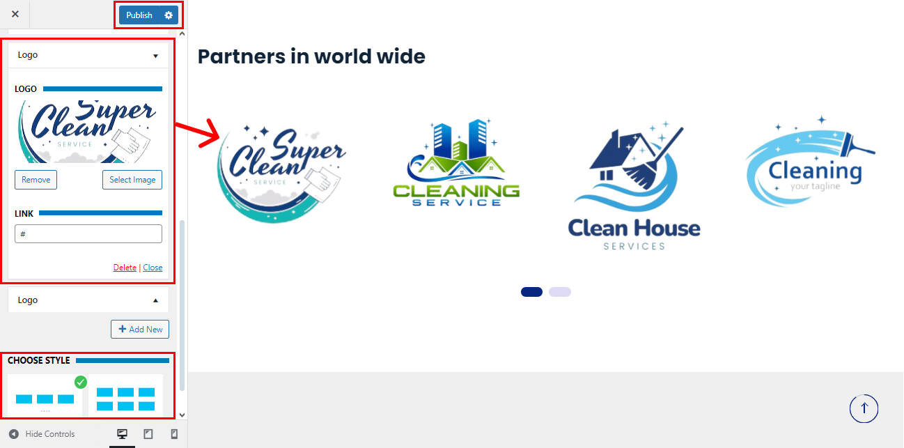 • Set the Client Logo Section title under the ‘Title‘ text field.