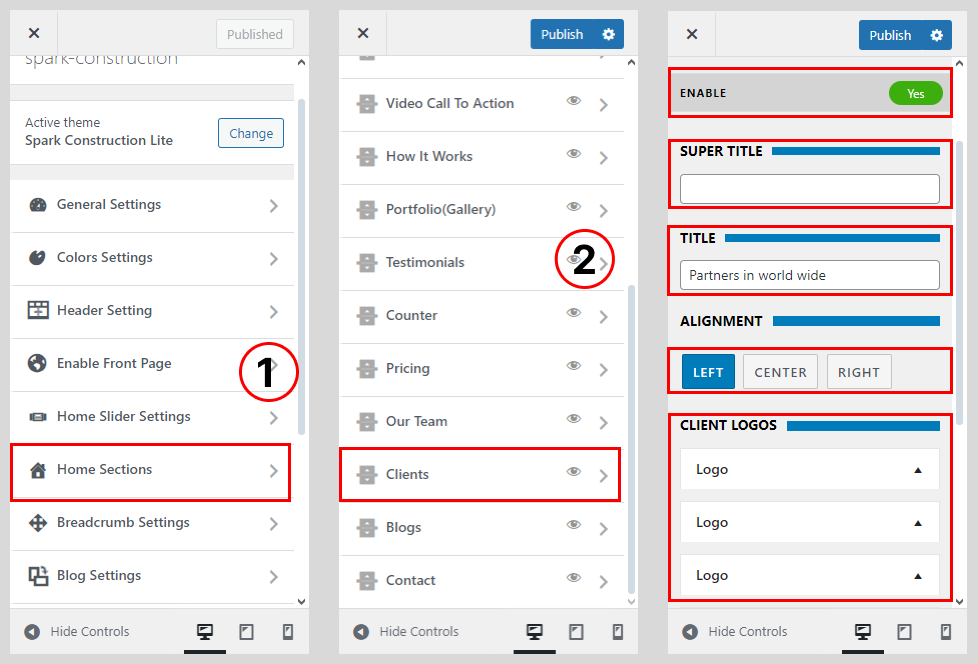 • Go to Home Sections > Client Logo Section.