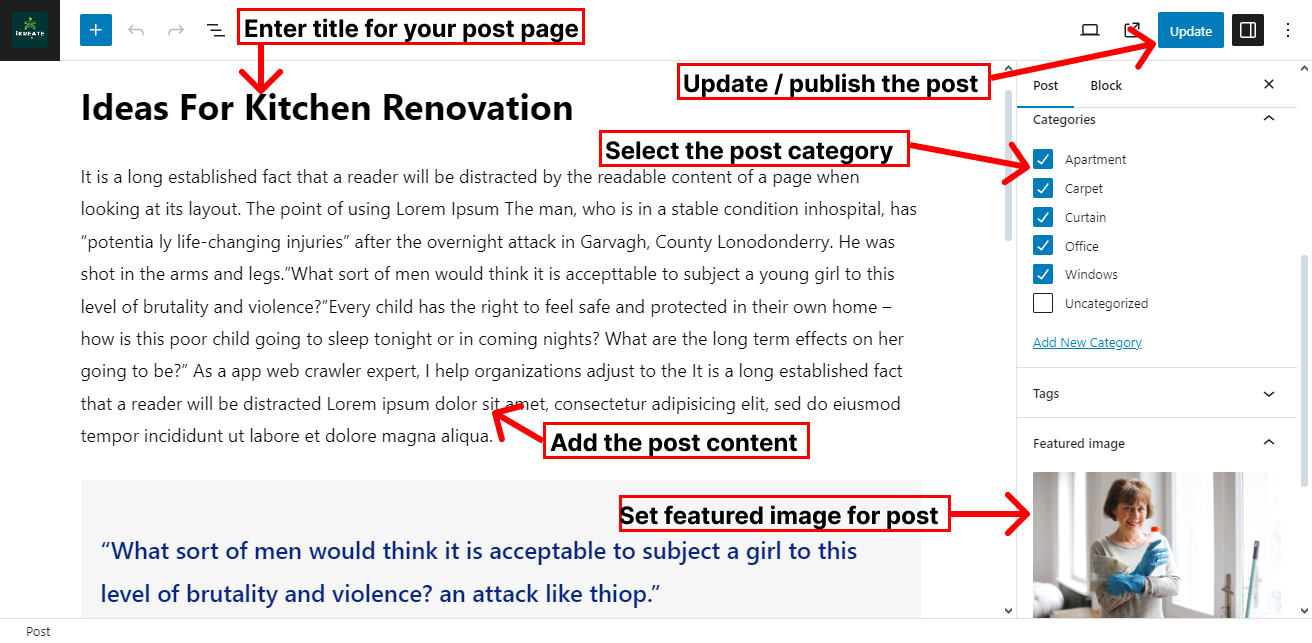 • Set the Featured Image for the blog post.