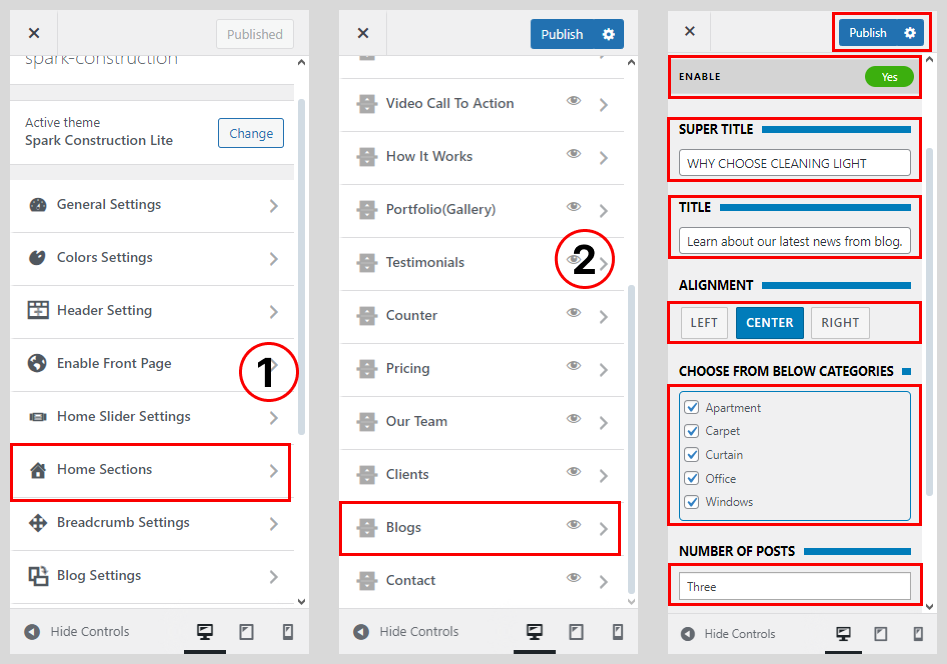 • Go to Home Sections > Blog Section.