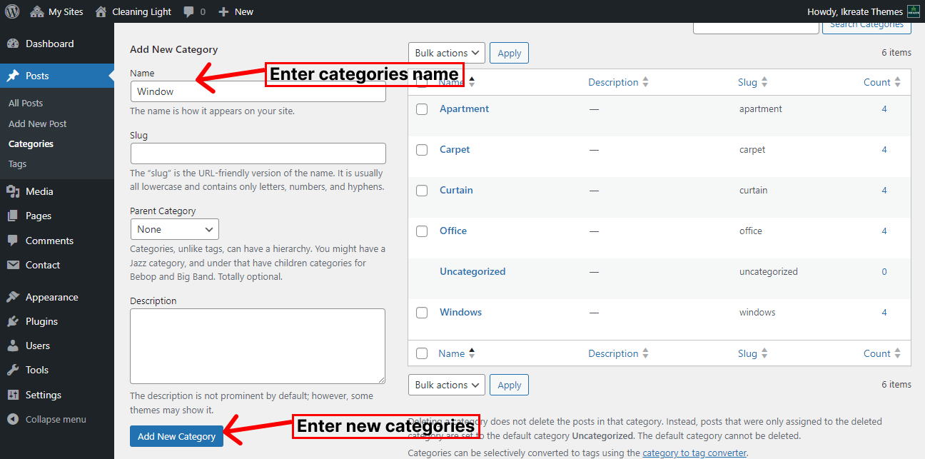• Go to Dashboard > Posts > Categories.