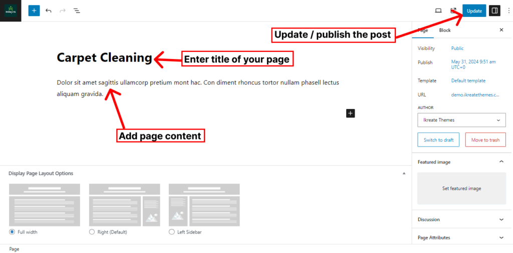 • Enter the title for the service page.