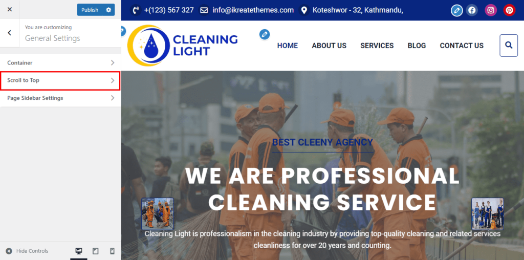 - Now, set the Scroll to Top option to On if you wish to have a scroll to top button on your website else set the option to No.