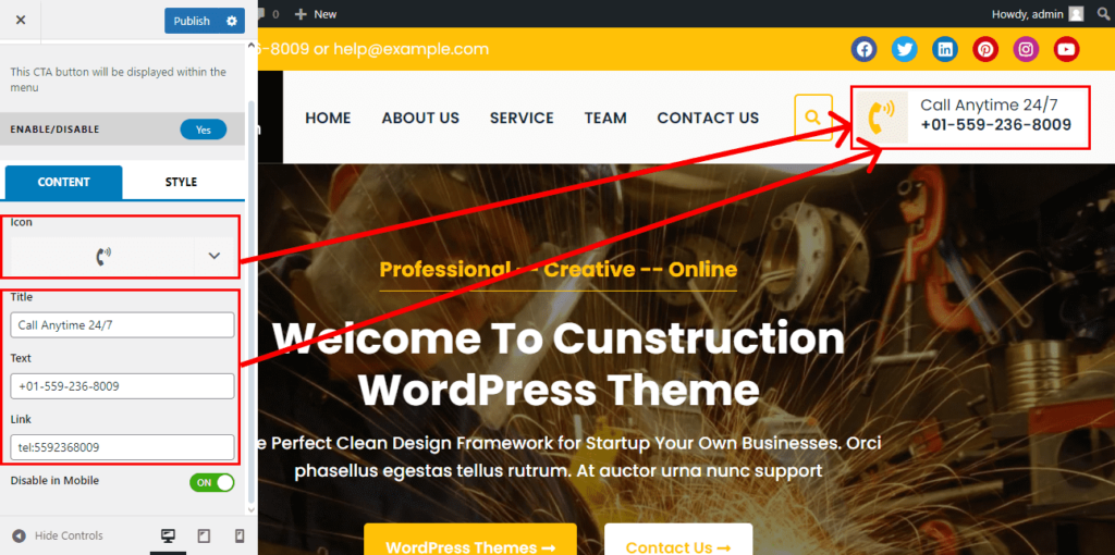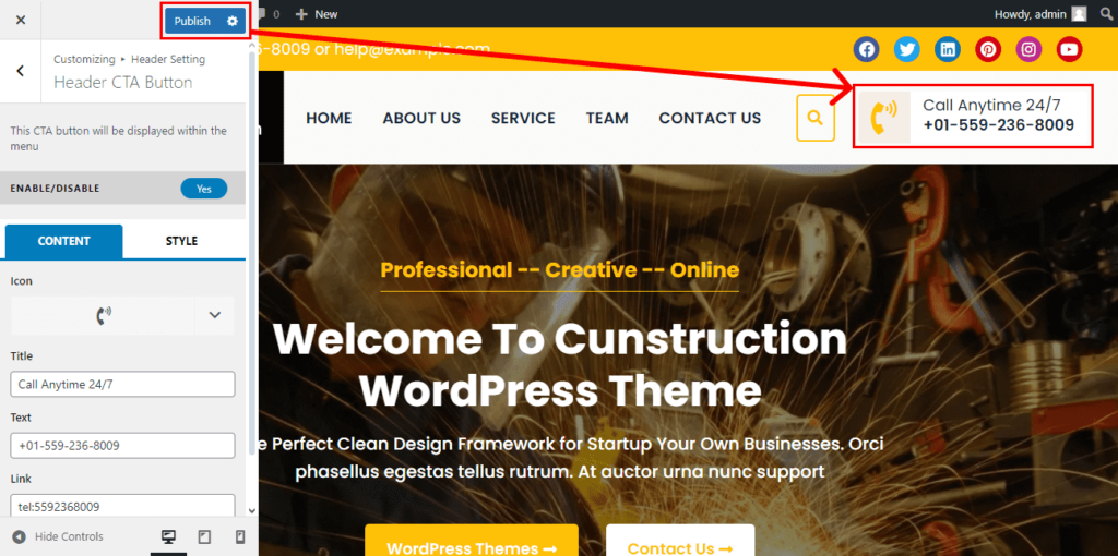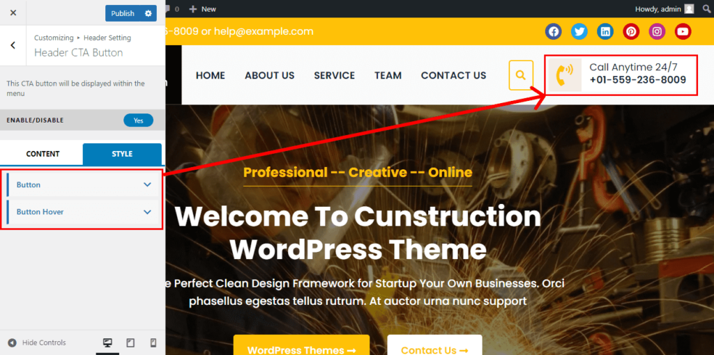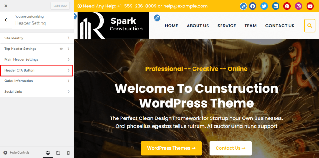 4. Header CTA Button Settings