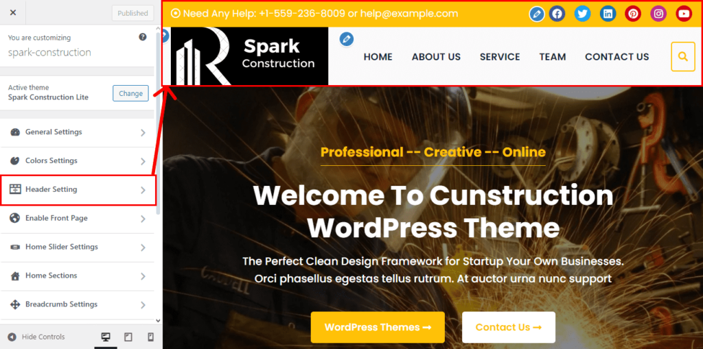• Go to Appearance > Customize > Header Settings