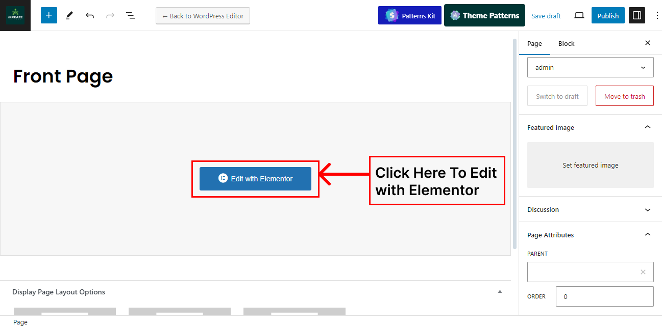 • Then, edit your newly created page and click on “Edit with Elementor” to create your homepage from Elementor.